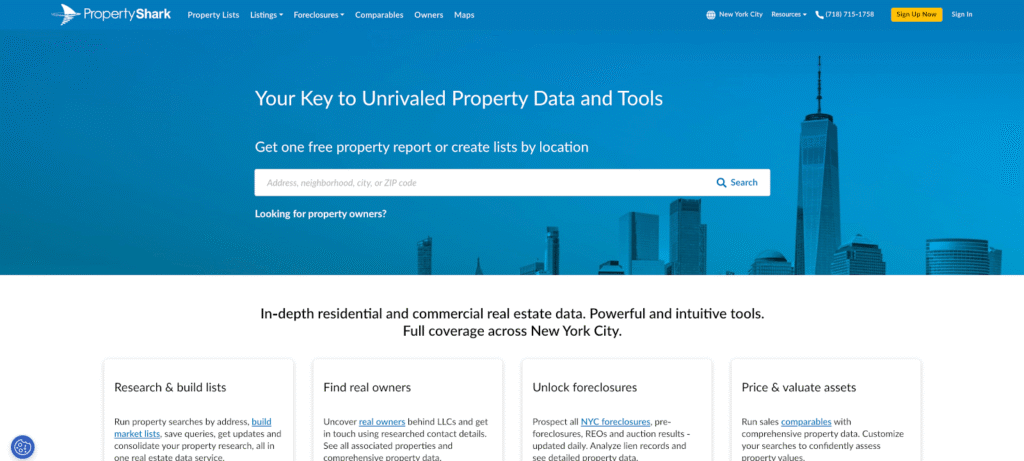 PropertyShark pulls together multiple data sources into searchable property reports. You can access: