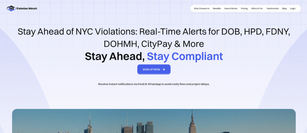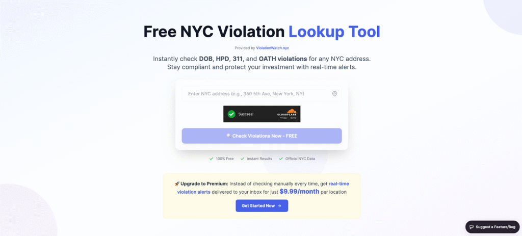 Before committing to monitoring services, you can check your building’s current violation status through ViolationWatch’s free lookup tool, presented with a modern design that both property teams and contractors find easy to follow and navigate.