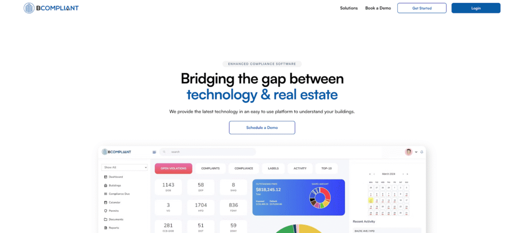BCompliant positions itself as a comprehensive compliance platform for NYC property managers handling multiple buildings. The software centralizes violation tracking, document management, and vendor coordination into a single dashboard.