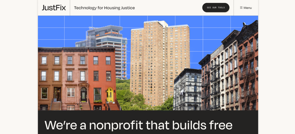 JustFix operates differently from traditional property management tools. The platform focuses on tenant advocacy, helping renters identify housing violations and pursue repairs through legal channels.