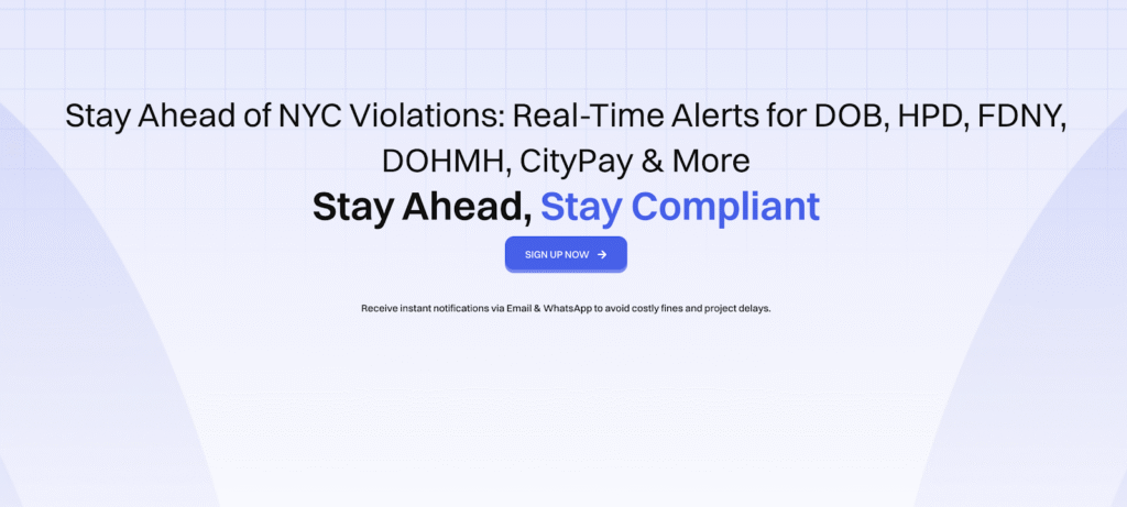 NYC property owners and managers need automated, real-time tracking that catches violations the moment they hit the system. You need instant alerts. Centralized dashboards. Violation history at your fingertips. And you need it without logging into five different agency portals every morning.