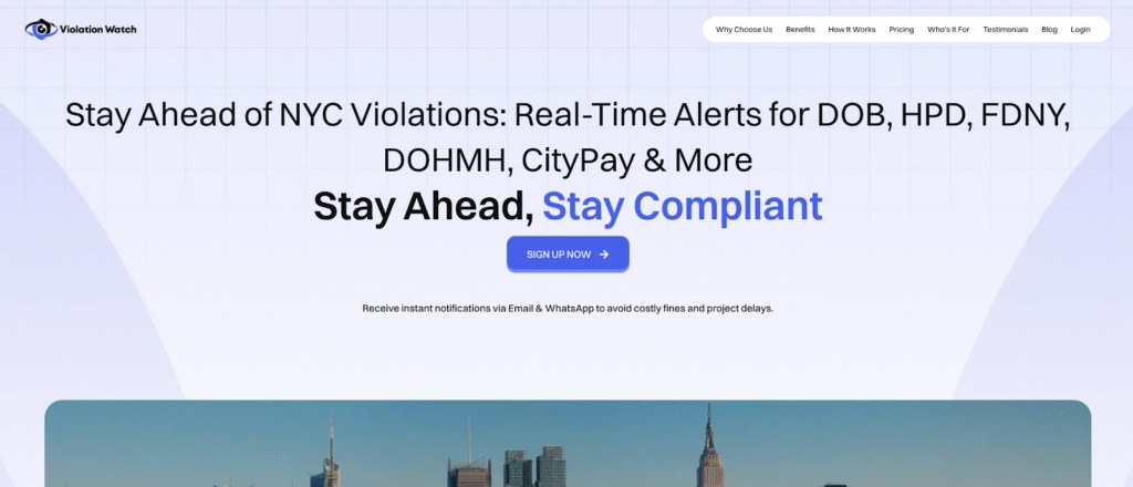 ViolationWatch takes a fundamentally different approach to NYC building violations monitoring. The platform uses artificial intelligence to scan violations across all major city agencies and deliver instant notifications the moment an issue appears. You’re not waiting hours for database scans. You’re not limited to DOB violations only. You get comprehensive coverage across multiple agencies through a single dashboard that updates continuously.