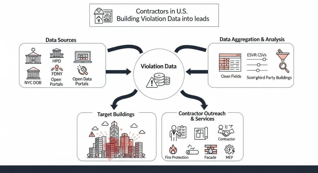 - Contractors who systematically track building violation data tap into a steady stream of high-intent, often budgeted repair projects instead of relying on generic outreach.